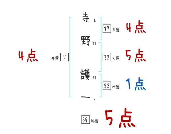 寺野護一さんの画数の鑑定結果