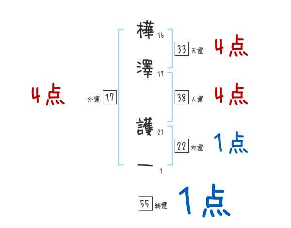 外運![]() | 樺澤護一さんの外運は17画の4つ星!積極的な行動力。地位を気づき財産を手に入れる。純粋な心と直感力。 生活面を象徴する運勢です。外部から受ける影響力を表し、結婚運、家庭運や職場、環境への順応性を表します。 |