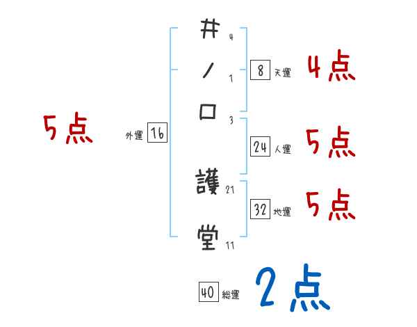 総運![]() | 井ノ口護堂さんの総運は40画の2つ星!自信過剰で物事に固執するためトラブルに注意。 あなたの人生を表す1番重要な運勢です。生涯を通じて影響する総合運となり、主に50歳以降の晩年期に影響を及ぼします。 |