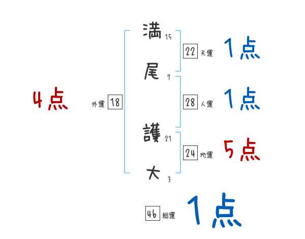満尾護大さんの画数の鑑定結果