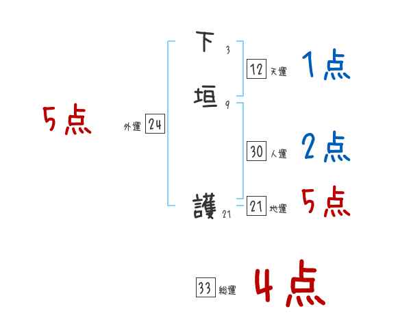 下垣護さんの画数の鑑定結果
