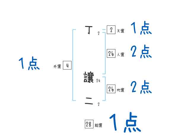 丁讓二さんの画数の鑑定結果