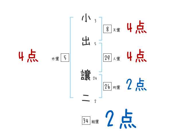 小出讓二さんの画数の鑑定結果