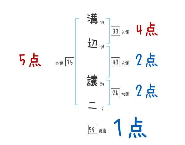 溝辺讓二さんの画数の鑑定結果