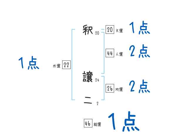 釈讓二さんの画数の鑑定結果