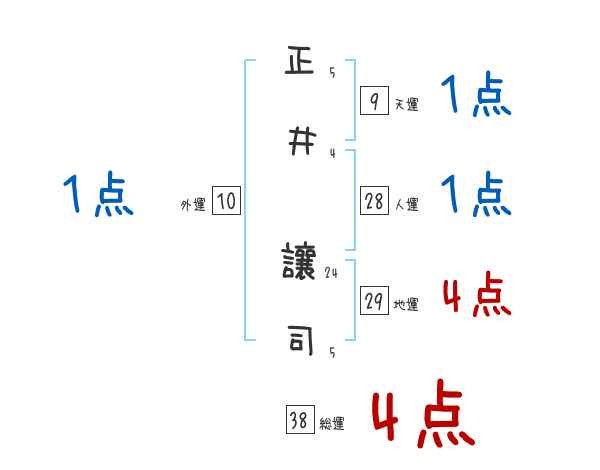 正井讓司さんの画数の鑑定結果