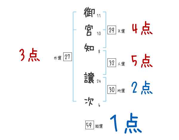 御宮知讓次さんの画数の鑑定結果