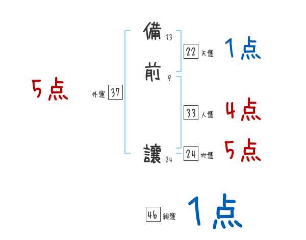備前讓さんの画数の鑑定結果