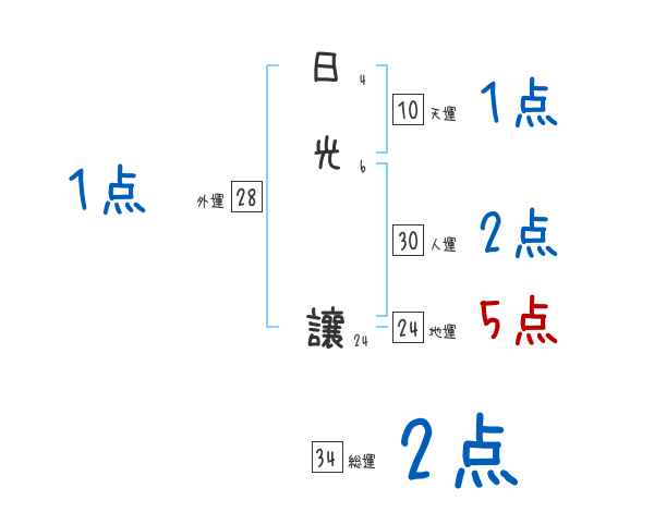 日光讓さんの画数の鑑定結果