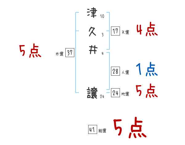 津久井讓さんの画数の鑑定結果