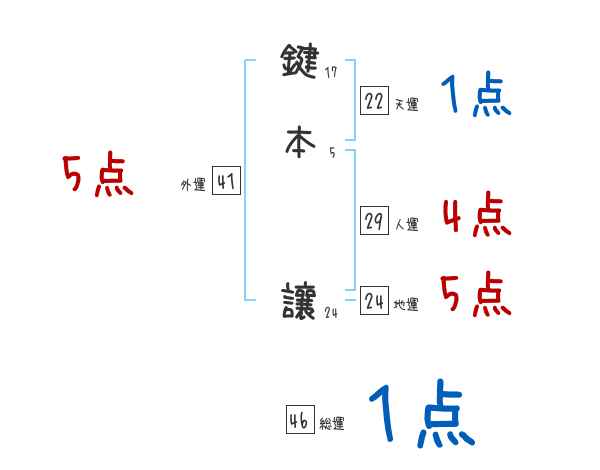 天運![]() | 鍵本讓さんの天運は22画の1つ星!努力することが苦手ないっぽう手先が器用。芸術性にも優れる。 家系が持つ宿命的な運勢を表します。祖先から受け継いだ苗字ですので自分の力が及びません。家柄を象徴します。 |