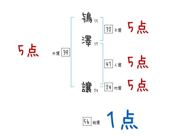 天運![]() | 鴇澤讓さんの天運は32画の5つ星!柔軟性があり成功する。チャンスが多く金運が良い。 家系が持つ宿命的な運勢を表します。祖先から受け継いだ苗字ですので自分の力が及びません。家柄を象徴します。 |