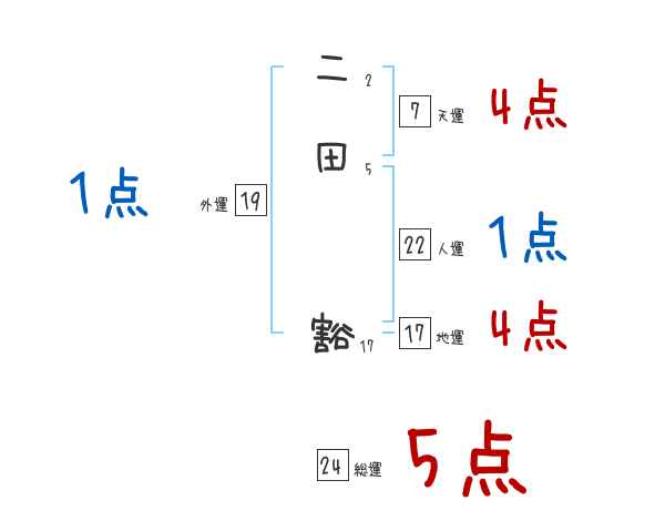 天運![]() | 二田豁さんの天運は7画の4つ星!強い意志や信念を持ち独立心が強い。自立する。 家系が持つ宿命的な運勢を表します。祖先から受け継いだ苗字ですので自分の力が及びません。家柄を象徴します。 |