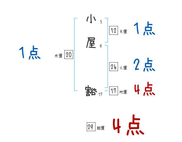 小屋豁さんの総運は29画の4つ星