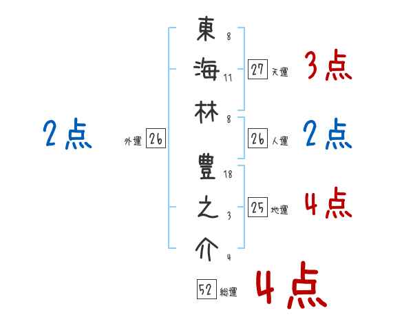外運![]() | 東海林豊之介さんの外運は26画の2つ星!波瀾万丈かも。信頼できる人を大事にしましょう。 生活面を象徴する運勢です。外部から受ける影響力を表し、結婚運、家庭運や職場、環境への順応性を表します。 |