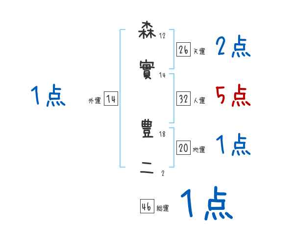 森實豊二さんの画数の鑑定結果