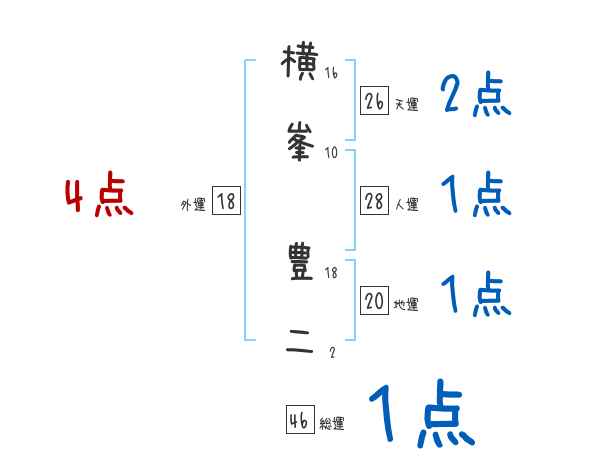 人運![]() | 横峯豊二さんの人運は28画の1つ星!家庭環境に注意。スポーツで活躍できる能力があるかも。 性格や才能などを表す2番目に重要な運勢です。人間関係や協調性、社会的な成功に影響します。主に20歳から50歳ぐらいまでの中年期の運勢を表します。 |