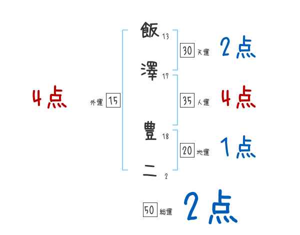 飯澤豊二さんの画数の鑑定結果