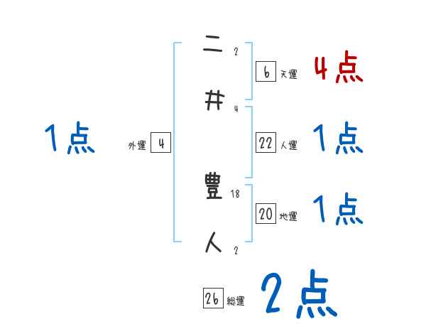 二井豊人さんの画数の鑑定結果