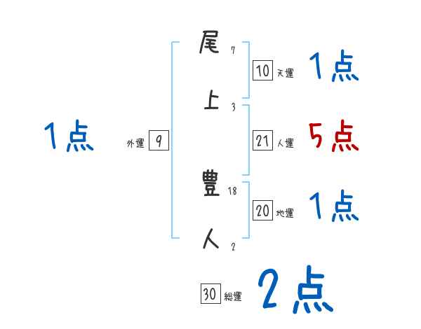 尾上豊人さんの画数の鑑定結果