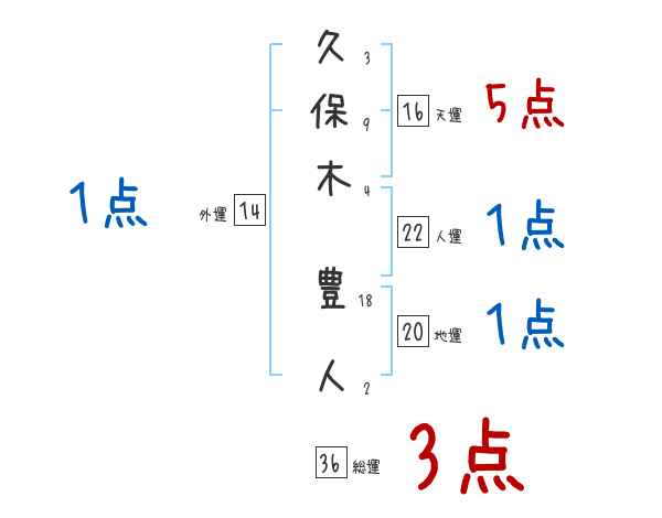 総運![]() | 久保木豊人さんの総運は36画の3つ星!先見性が豊かです。多少神経質で苦労することも。 あなたの人生を表す1番重要な運勢です。生涯を通じて影響する総合運となり、主に50歳以降の晩年期に影響を及ぼします。 |