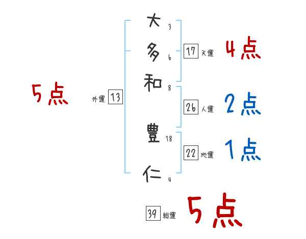 天運![]() | 大多和豊仁さんの天運は17画の4つ星!積極的な行動力。地位を気づき財産を手に入れる。純粋な心と直感力。 家系が持つ宿命的な運勢を表します。祖先から受け継いだ苗字ですので自分の力が及びません。家柄を象徴します。 |