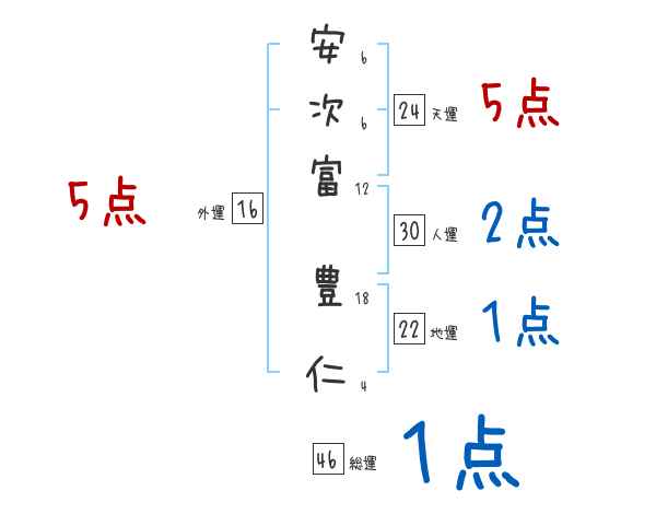 安次富豊仁さんの画数の鑑定結果