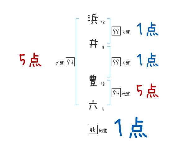 浜井豊六さんの画数の鑑定結果