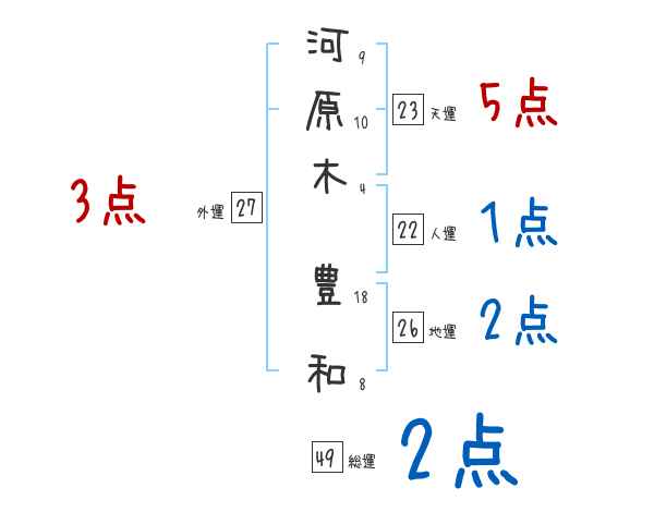 河原木豊和さんの画数の鑑定結果