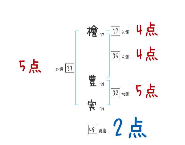 檜豊実さんの画数の鑑定結果