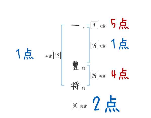天運![]() | 一豊将さんの天運は1画の5つ星!行動力、指導力があり出世し繁栄する。幸運に恵まれる。 家系が持つ宿命的な運勢を表します。祖先から受け継いだ苗字ですので自分の力が及びません。家柄を象徴します。 |