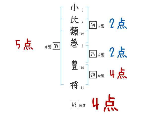 外運![]() | 小比類巻豊将さんの外運は37画の5つ星!努力家で順応性に優れる。現実的な考え方ができ忠実に物事をこなす。 生活面を象徴する運勢です。外部から受ける影響力を表し、結婚運、家庭運や職場、環境への順応性を表します。 |