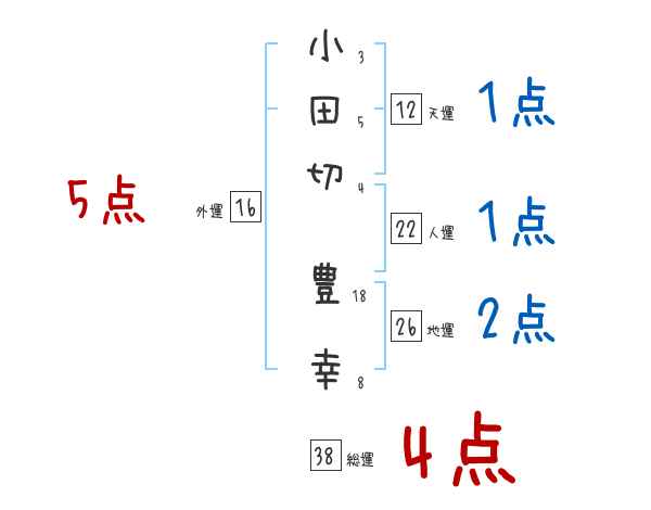 小田切豊幸さんの画数の鑑定結果