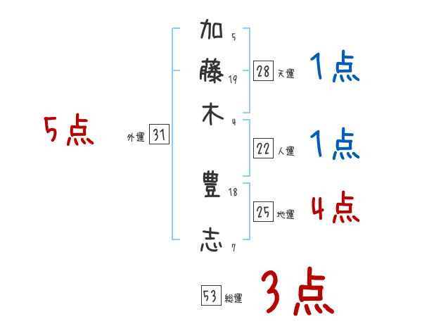 加藤木豊志さんの画数の鑑定結果