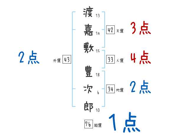 渡嘉敷豊次郎さんの画数の鑑定結果