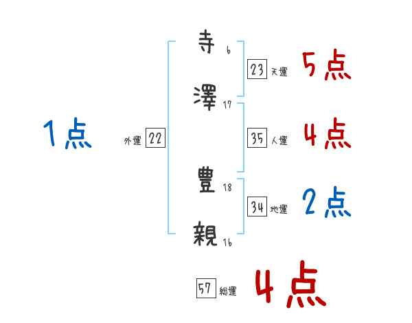 家系が持つ宿命的な運勢を表します。祖先から受け継いだ苗字ですので自分の力が及びません。家柄を象徴します。