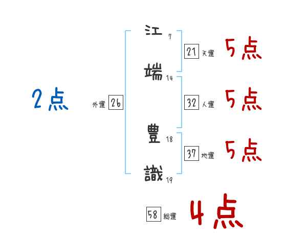 江端豊識さんの総運は58画の4つ星