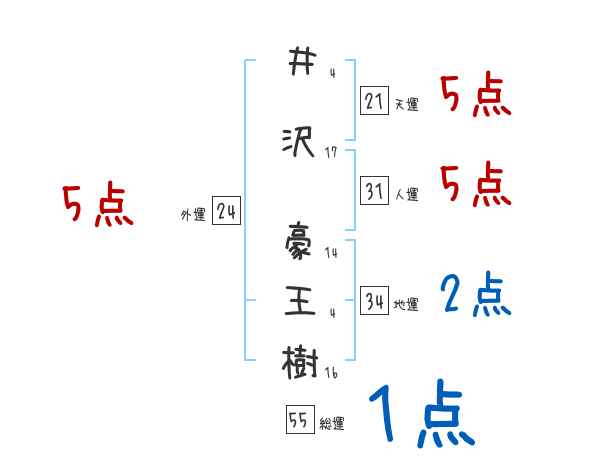 井沢豪王樹さんの画数の鑑定結果