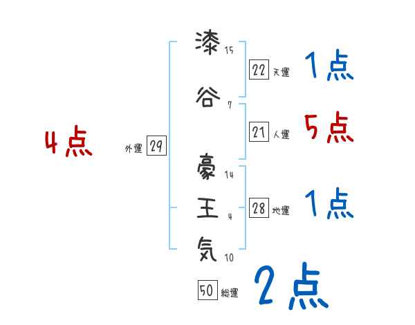 外運![]() | 漆谷豪王気さんの外運は29画の4つ星!完全主義で才能がある。厳格な心の持ち主。 生活面を象徴する運勢です。外部から受ける影響力を表し、結婚運、家庭運や職場、環境への順応性を表します。 |