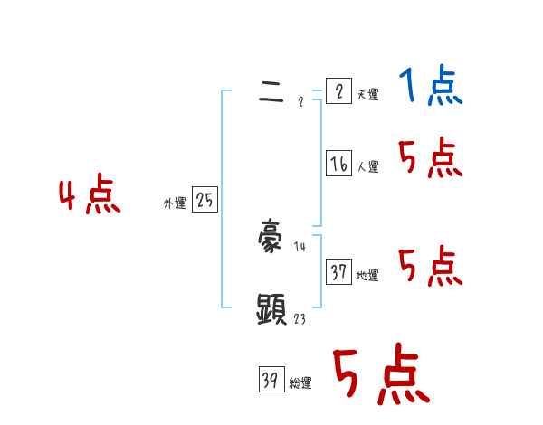 二豪顕さんの画数の鑑定結果