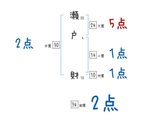 瀬戸財さんの画数の鑑定結果