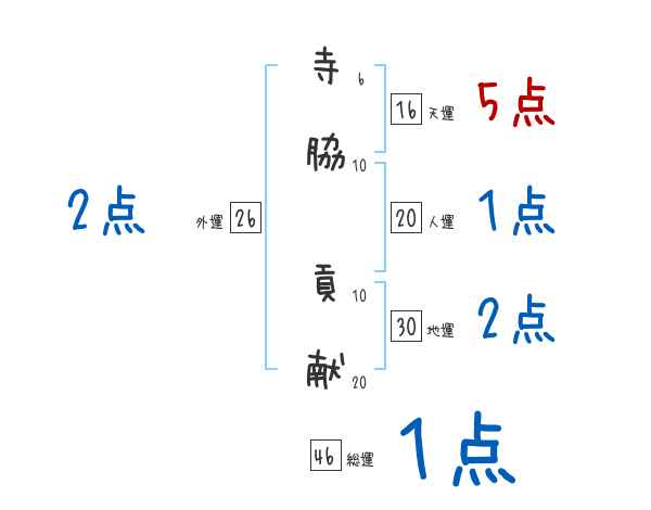 寺脇貢献さんの画数の鑑定結果