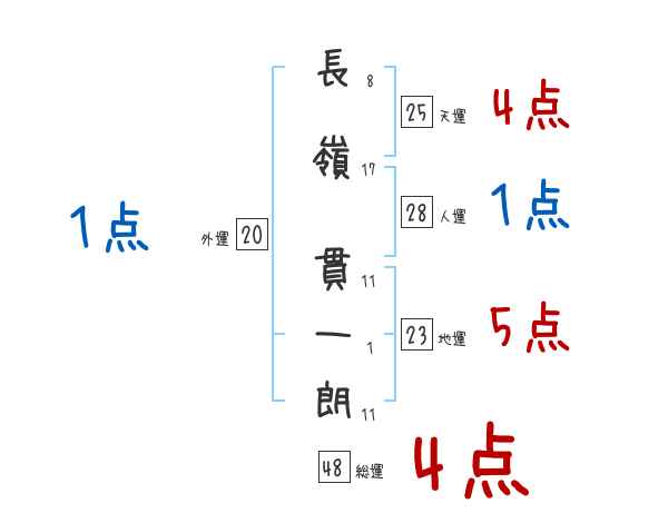 総運![]() | 長嶺貫一朗さんの総運は48画の4つ星!賢明な性格で人望が厚い。指導力があり多くの人に尊敬される。 あなたの人生を表す1番重要な運勢です。生涯を通じて影響する総合運となり、主に50歳以降の晩年期に影響を及ぼします。 |