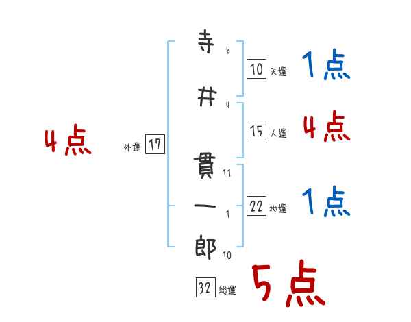 寺井貫一郎さんの画数の鑑定結果