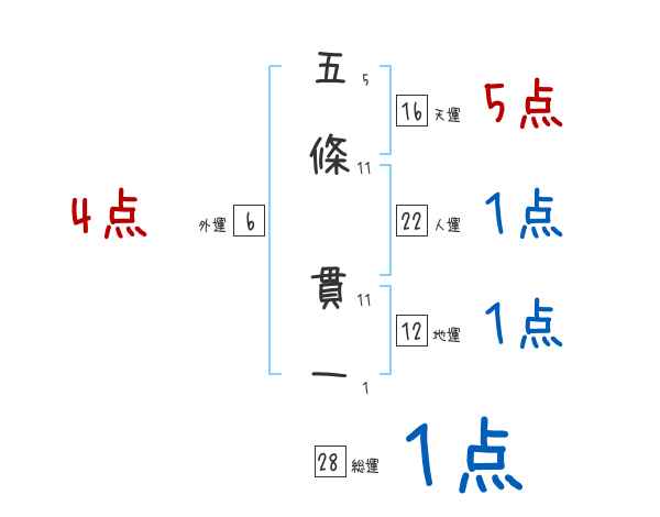 五條貫一さんの画数の鑑定結果