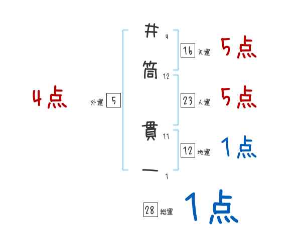 井筒貫一さんの画数の鑑定結果