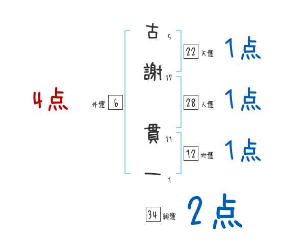 古謝貫一さんの画数の鑑定結果