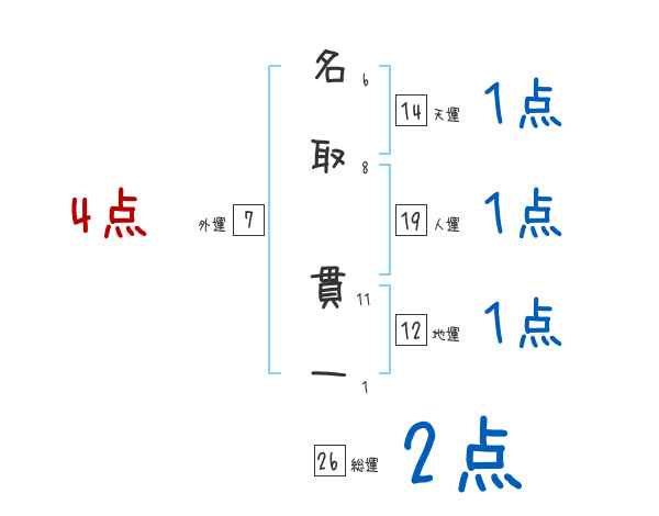 名取貫一さんの画数の鑑定結果