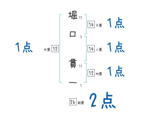 堀口貫一さんの画数の鑑定結果
