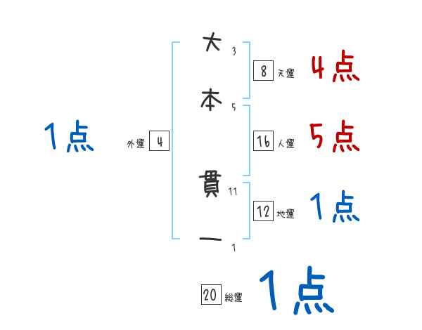 大本貫一さんの画数の鑑定結果